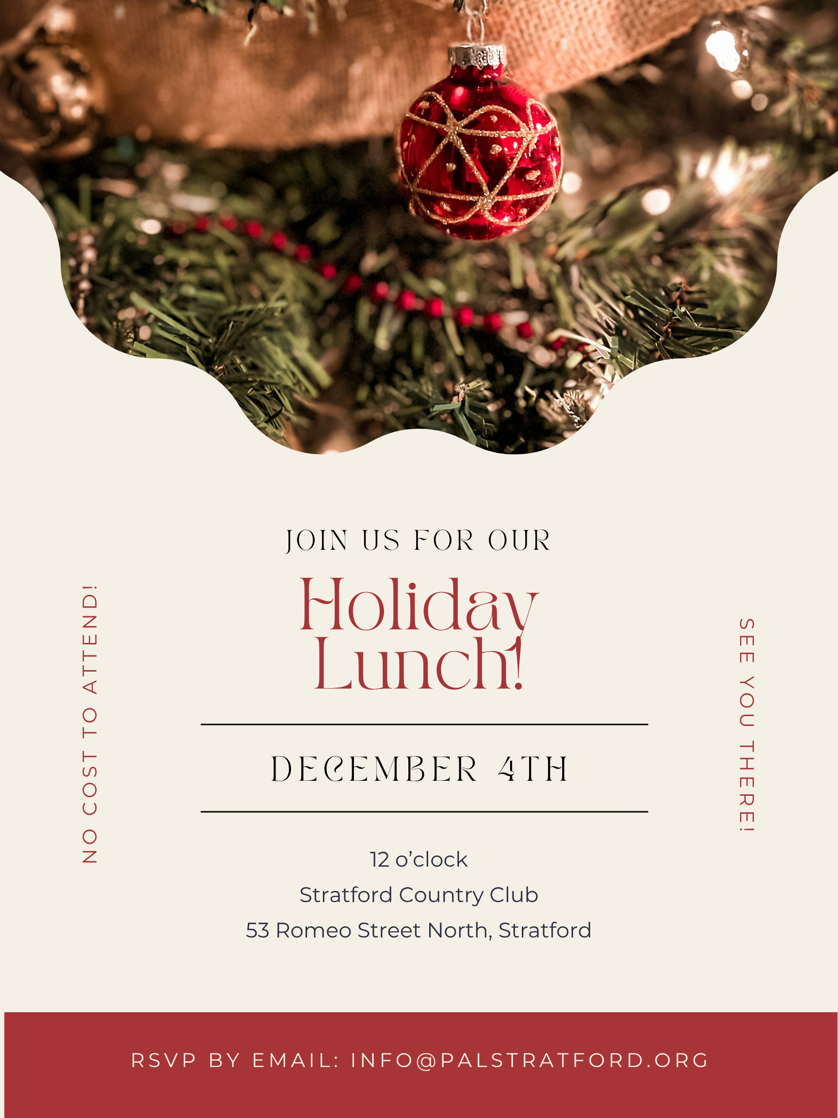 Mark your calendars and RSVP now to secure your place at the table! PAL’s holiday lunch is taking place on Thursday December 4th at 12 o’clock at the Stratford Country Club. Open to all those who consider themselves part of our community, whether you are an arts professional or an arts supporter. We would love to have you join us to bring in the festive season together!