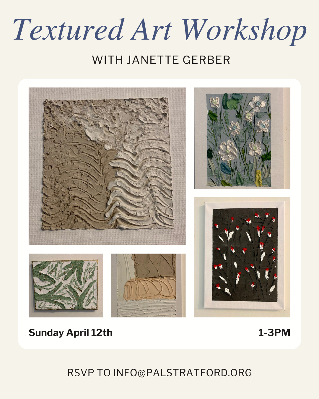 Youโre warmly invited to our Textured Art Workshop with Janette Gerber!
